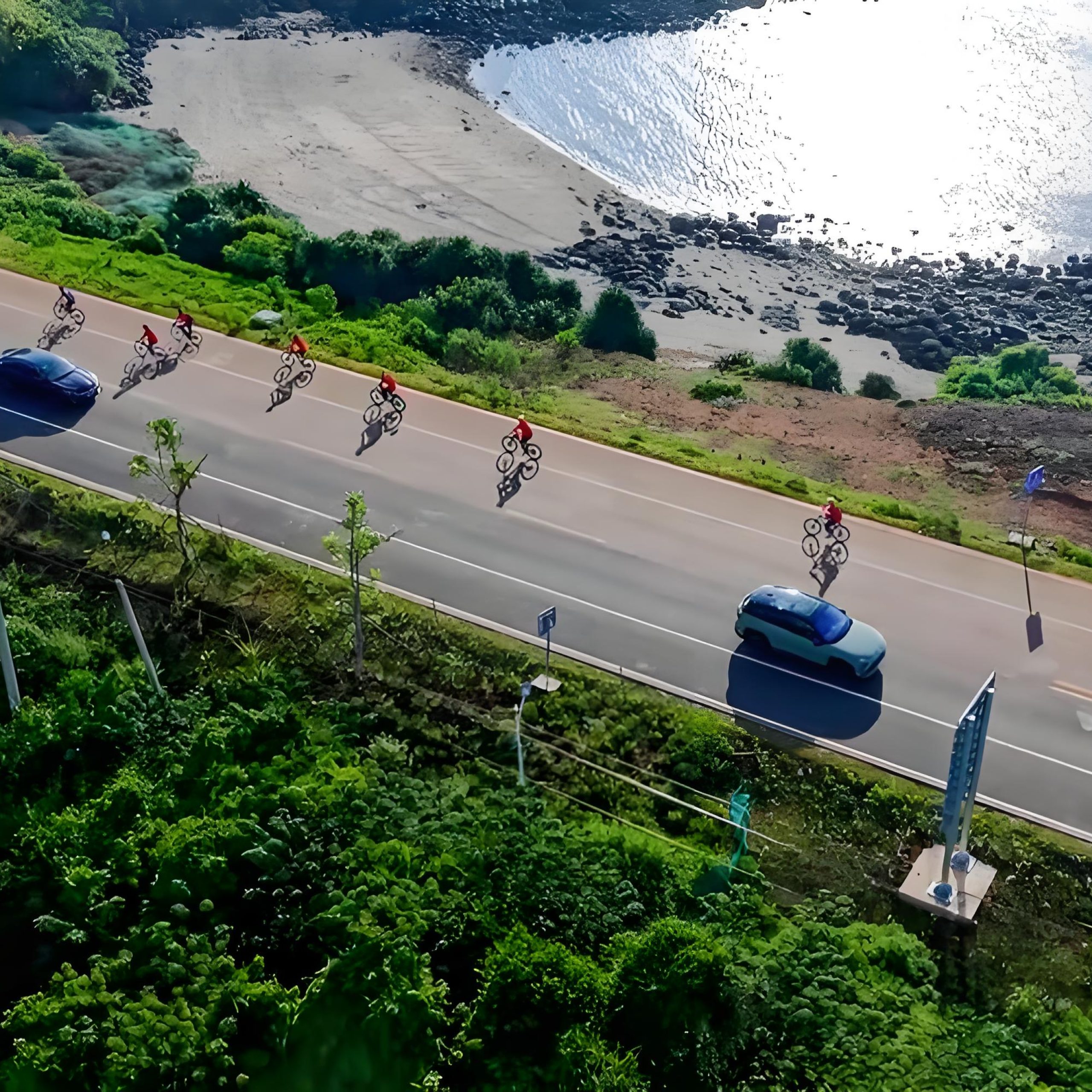 The Hainan Tourism Road sections are beautifully paved, coastal roads with wide shoulders and very light traffic—perfect for cycling. National Road 225 is a bit busier but still manageable with clear lanes. Our route prioritizes safety and scenic enjoyment.